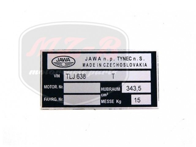 JAWA 350 12V TYPSCHILD /638/
